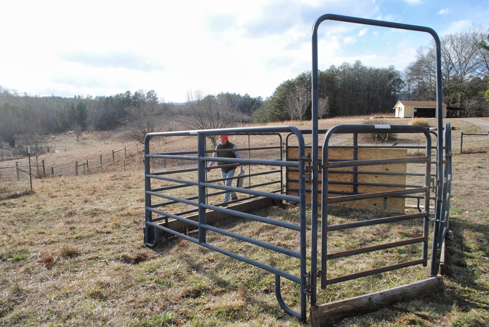 We cannibalized our round pen, taking the corral panels off and carrying them into the pasture.